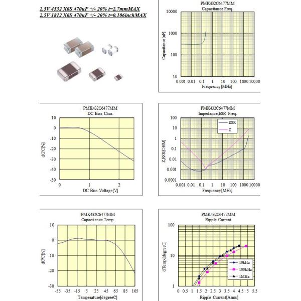 PMK432C6477MM-T Cap Ceramic 470uF 2.5V X6S 20% SMD 1812 105°C Paper T/R