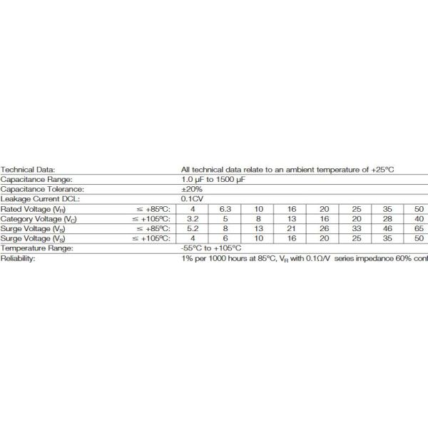 220uF 20VDC Tantalum Electrolytic Capacitor TCN4227M020R0100 Images |