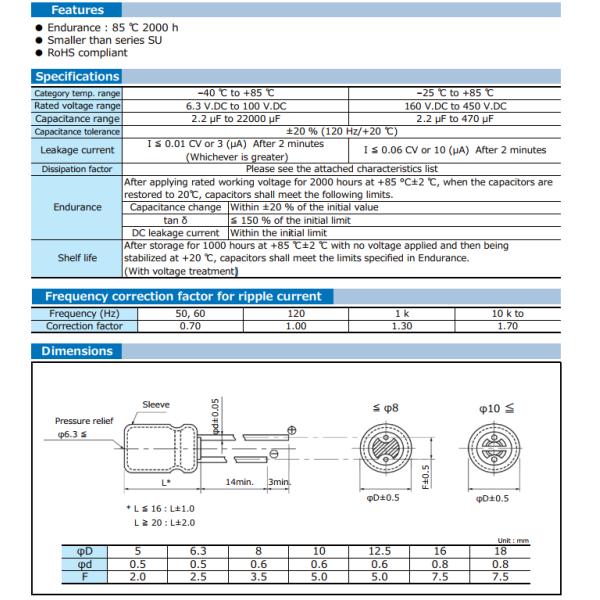 | Lifetime @ Temp. | 2000 Hrs @ 85°C |